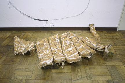 それらは支持体と表層、線とかたち、色彩とかたち、あるいはかたちとかたちの間といったものの関係のなかで解体され、表面のざらつきのなかで新たな意味を生成し、新たな世界を現前させてくれる。そして契機となった現実-世界は明示的なものとして表象されることはなく、背後へとおしやられる。それにもかかわらず、立体的な形態を持つ作品では壁という現実を背景に、一定の空間を占有し、かたちと空間あるいは時間の否応もない体験の知覚によって現実へと遡行していく。