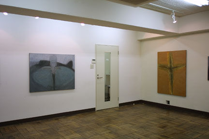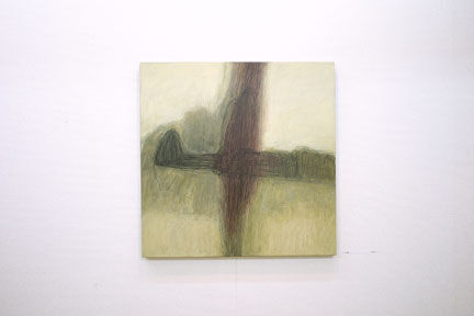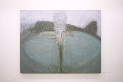私自身の作品を再現的に描写することによって作品は壁から遊離し、そこでは何が描かれているのか、どの様なものであるのかは見えても、それが何であるのかは不明のものとして浮遊し、絵画という表面のざらつきのなかで現れている。