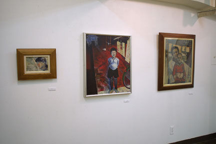 つぎに、古い作品から自分自身と関わりのある人物画を展示してみることにした。どの作品も制作当時、完成しなくて苦戦した。その時は,どの様に進めれば良いのか判らなくなり途中で投げ出した形になっていたが、今改めて観てみると当時の心境が良く出ていて、意味のない作品ではないと思える。作品を観て感じたことは、作品というものは自分の意識されない性質を好むとか好まざるに関わらず表出するものだ。人は自分を変えることが基本的には出来ない。自分自身は変ったと思っていても、他人から見ると何も変わっていないのである。つまらない自己抑制をしてみても本質は変えられないのだから、自分で枠を作らず好きなように表現してみたい。この限られた自分の世界を受容して前に進んでいくしか方向性は無いといえる。