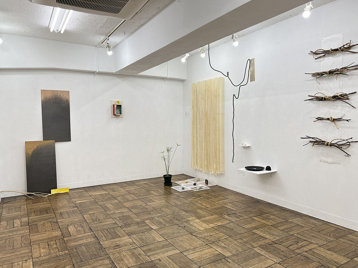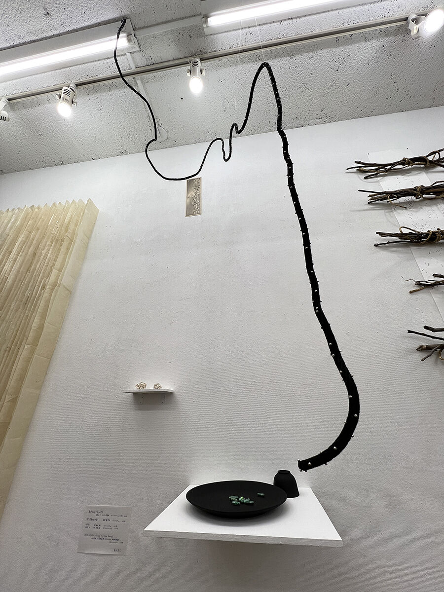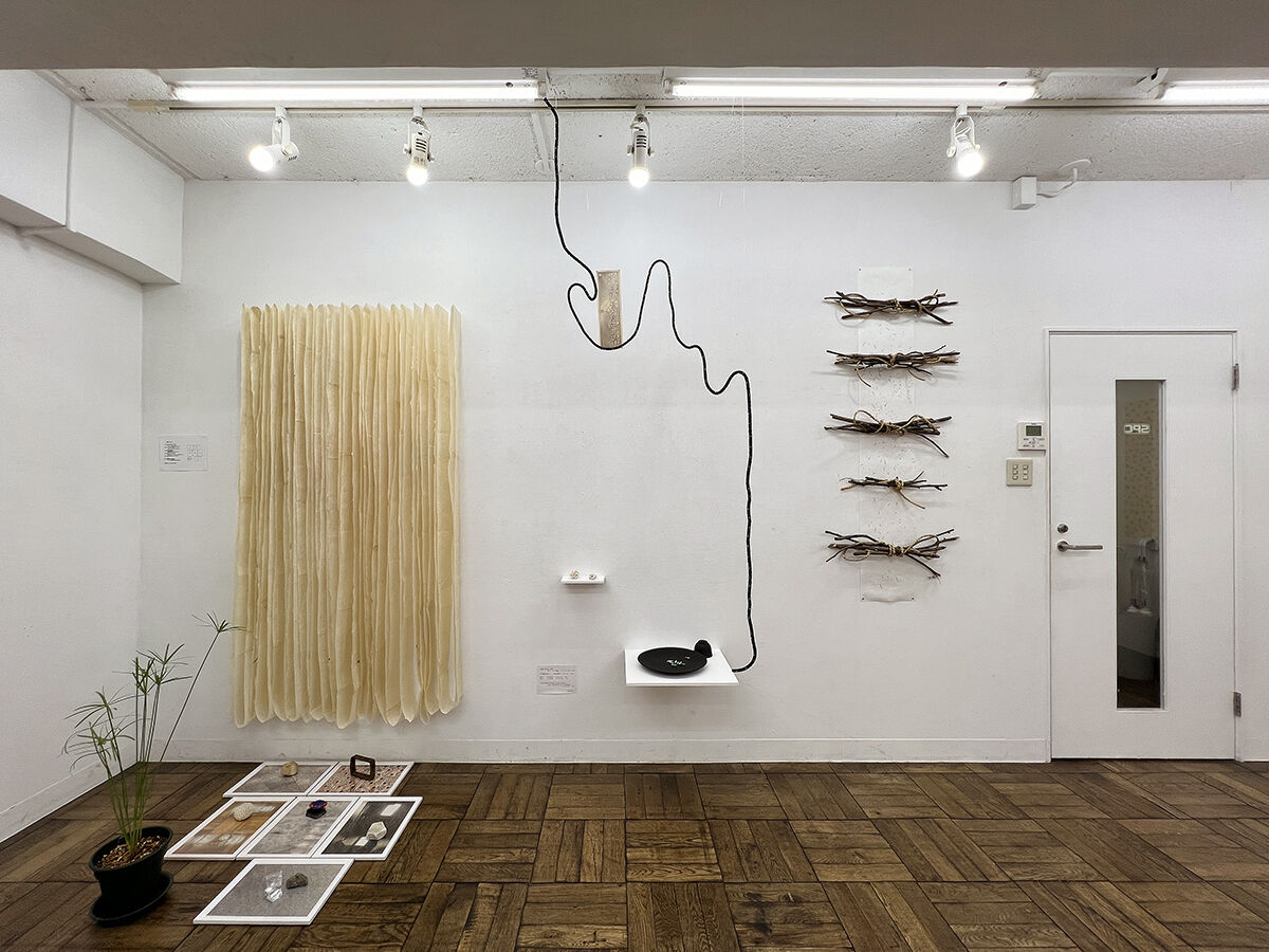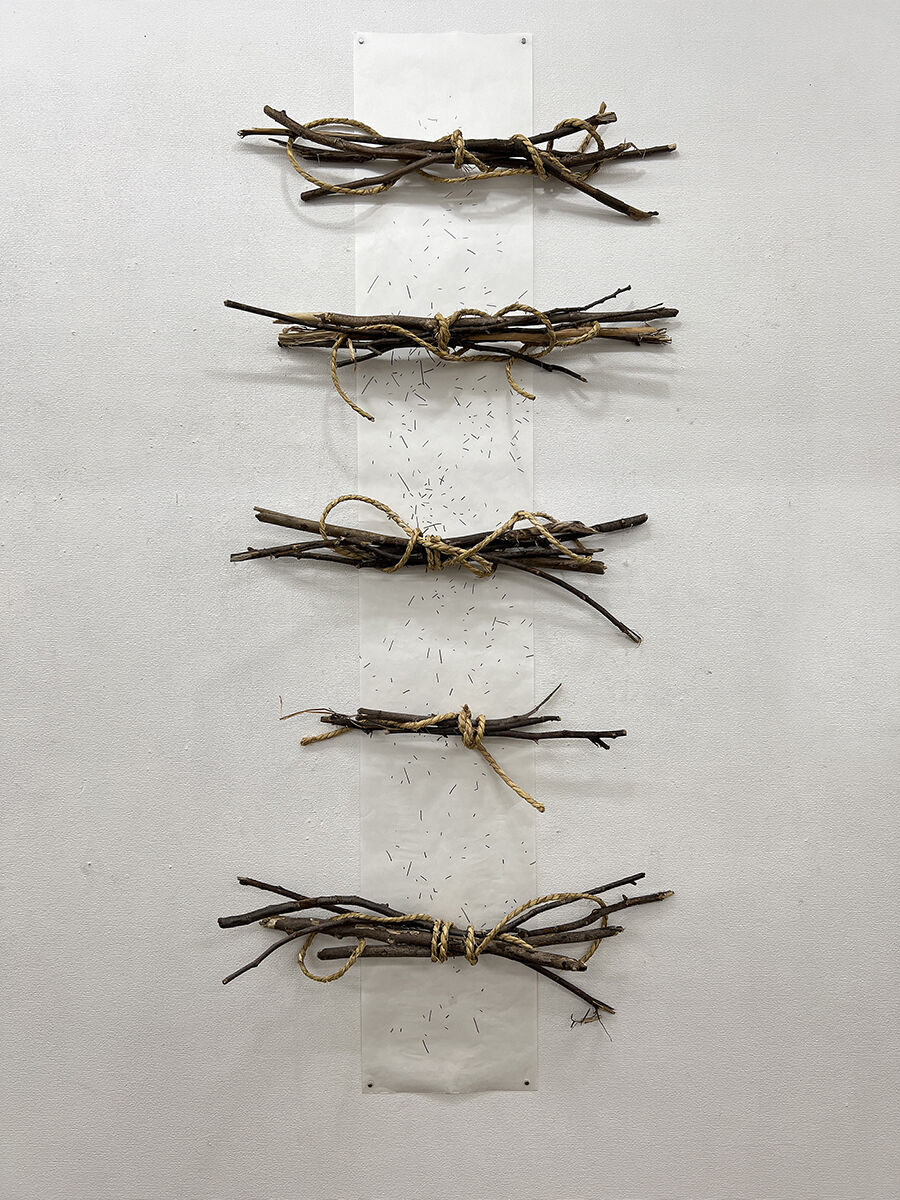 石倉 仁一郎 《 ときのかけら 》 紙に鉛筆, 枝, 紐 /インスタレーション