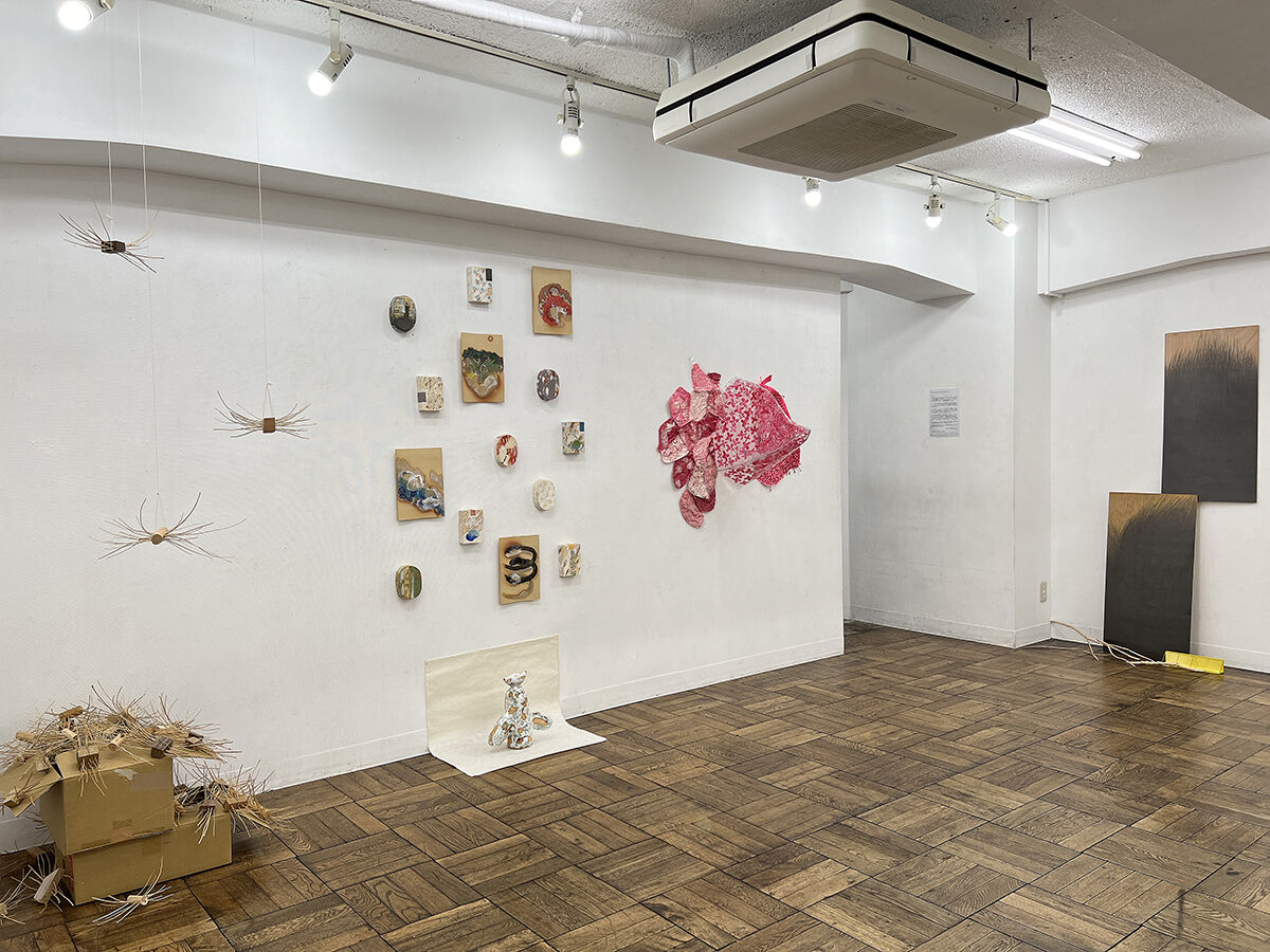 広田 美穂 《 たとえ耳がダンボになったとしても 》 壁にビニール, 針金, 布, 糸 /立体・インスタレーション