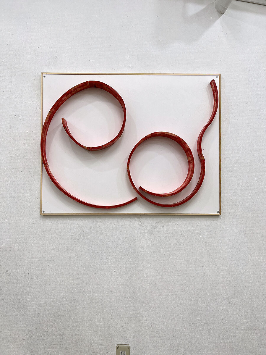 平 昇 《 無自覚な ラインに引き寄せられて 》 木製パネルに角材 /レリーフ