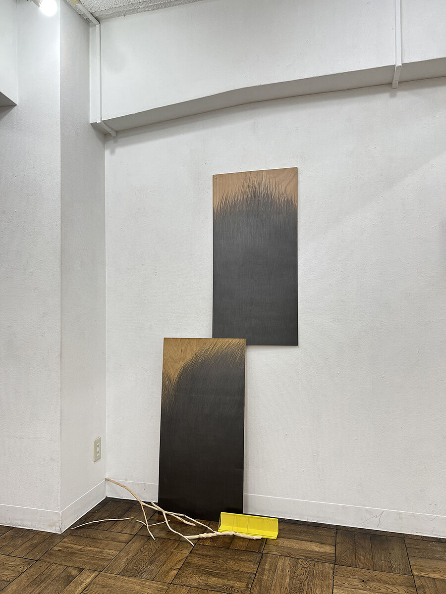 中谷 欣也 《 in out 「行為と発生」 ‘23u 》 紙に焦げ跡, 角材 /ドローイング