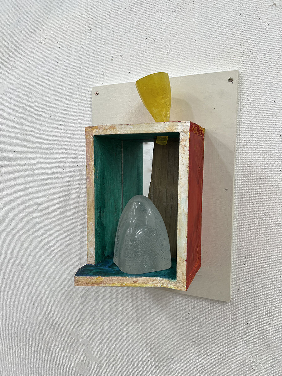 堀本 俊樹 《 壁のむこうに 》 ガラス, 鏡, 角材 /レリーフ