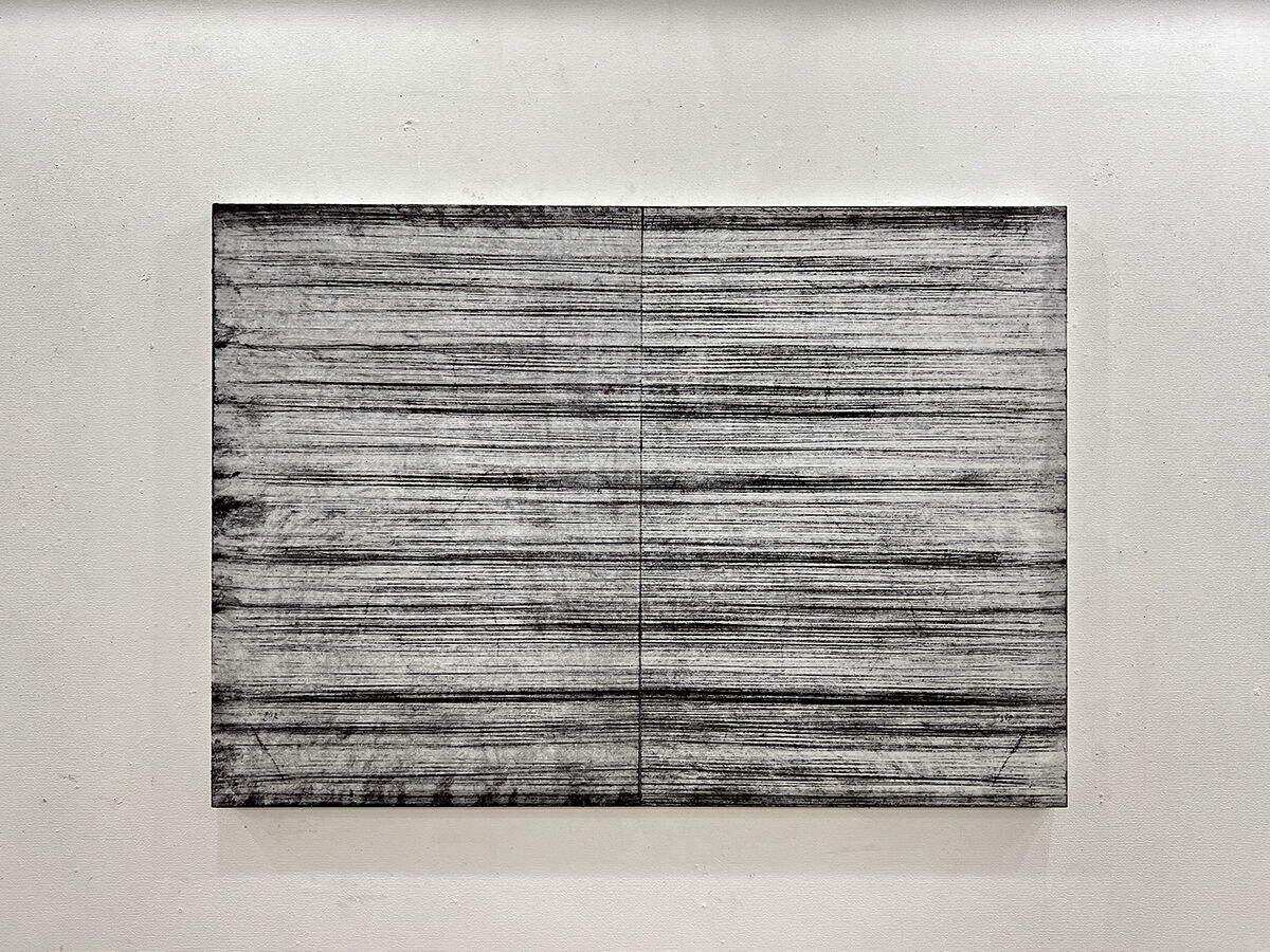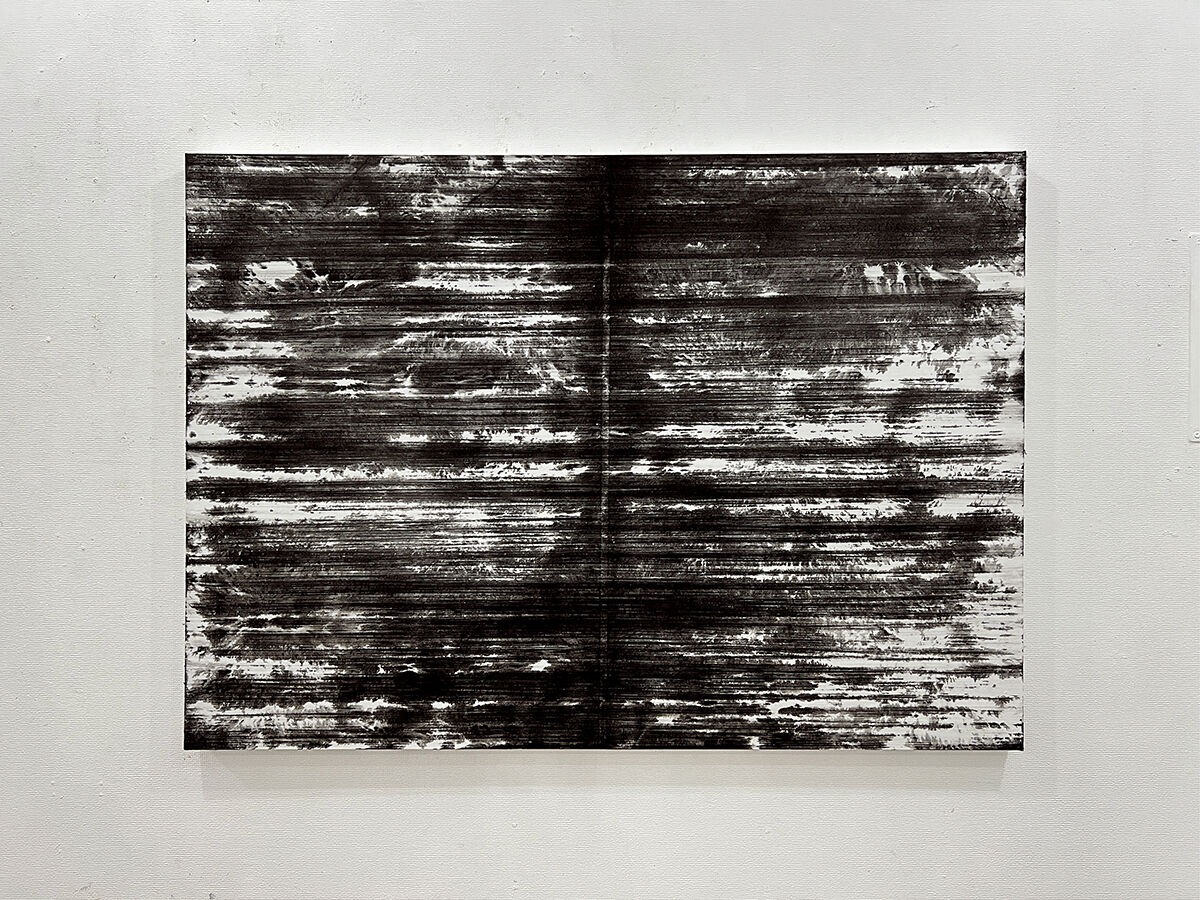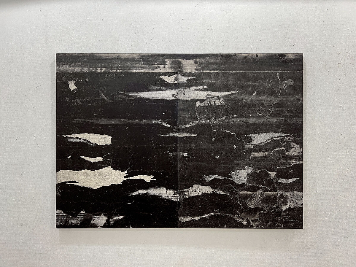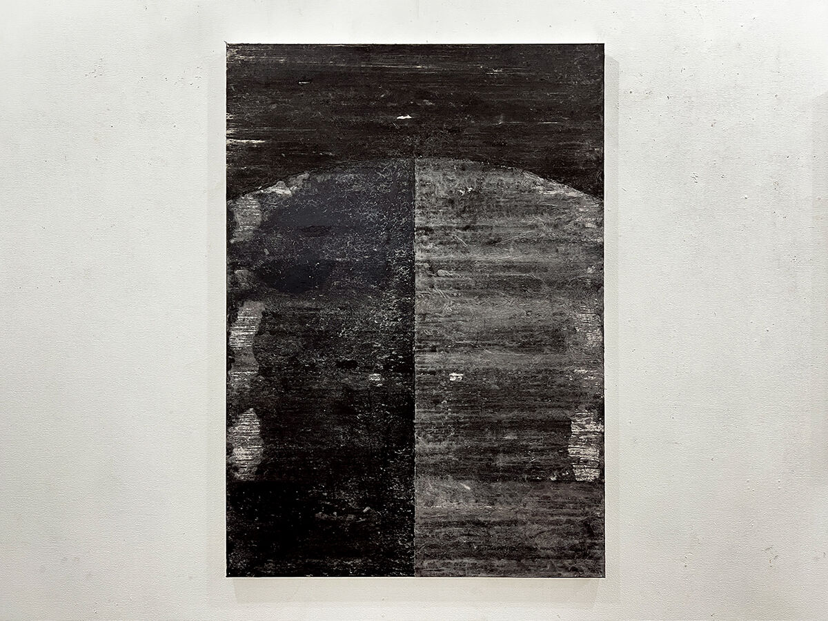 平塚 良一 / 木製パネル, 和紙に墨汁.