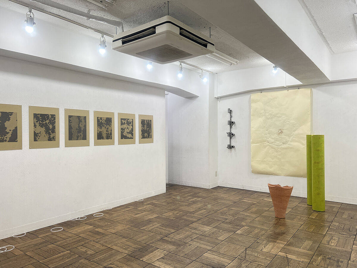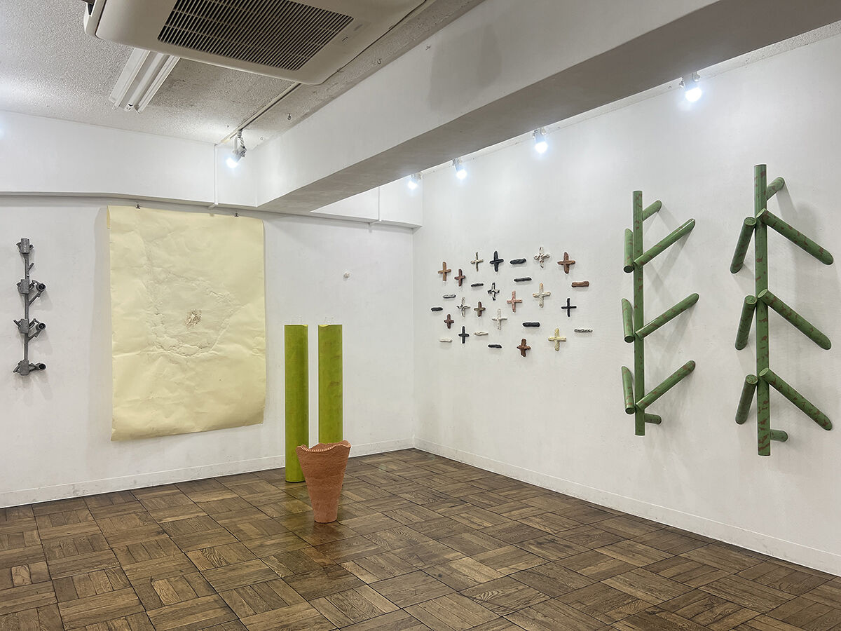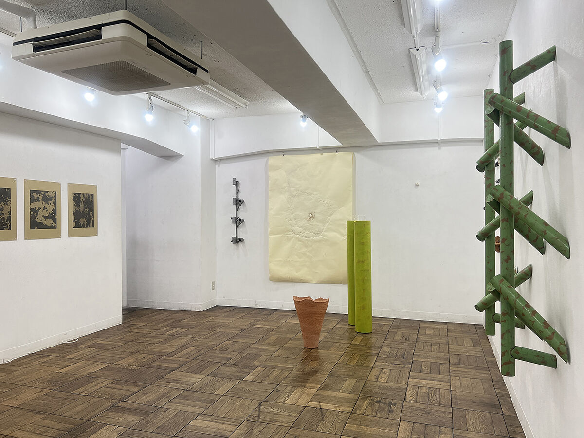 永沼 直孝 / 紙パイプに塗料, セラミック, 紙にフロッタージュ, アルミ鋳造, 綿棒, 他. / 立体, インスタレーション