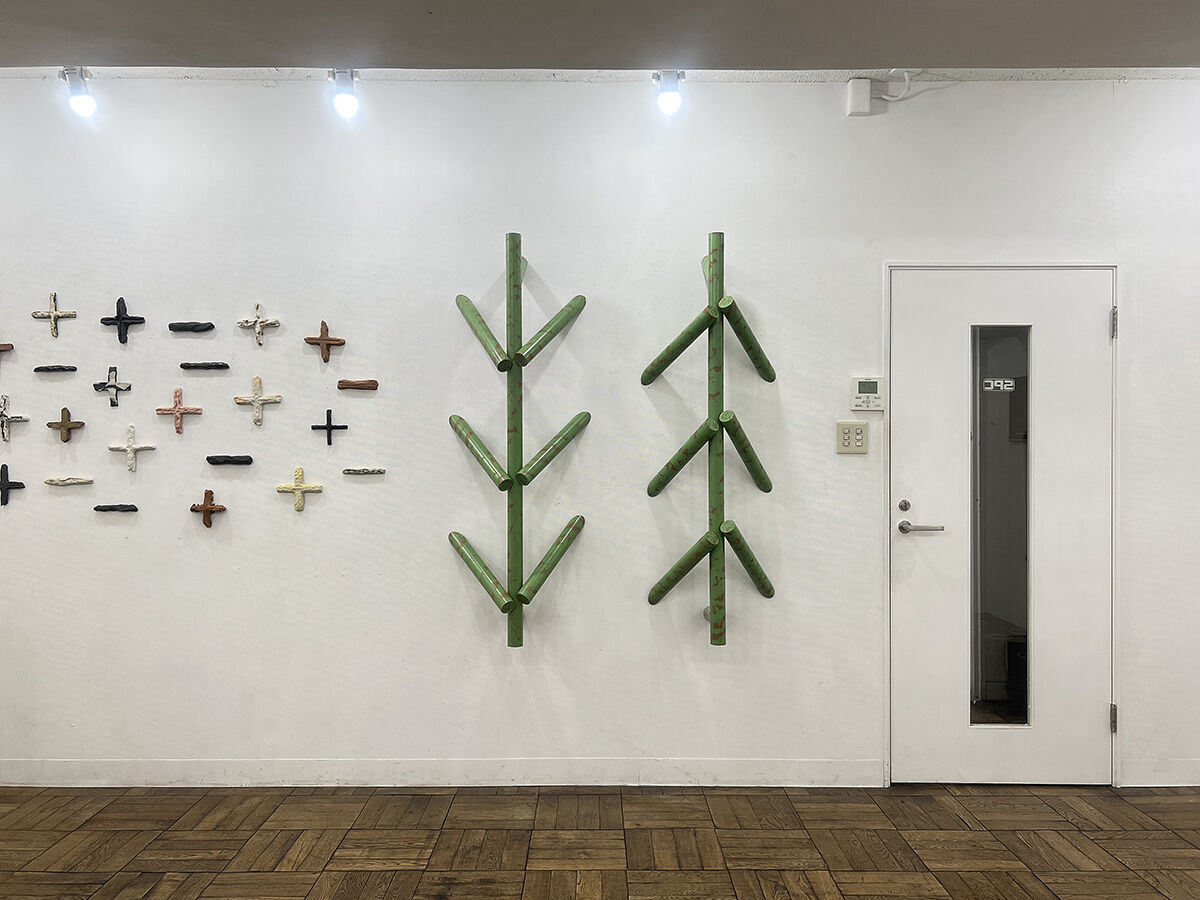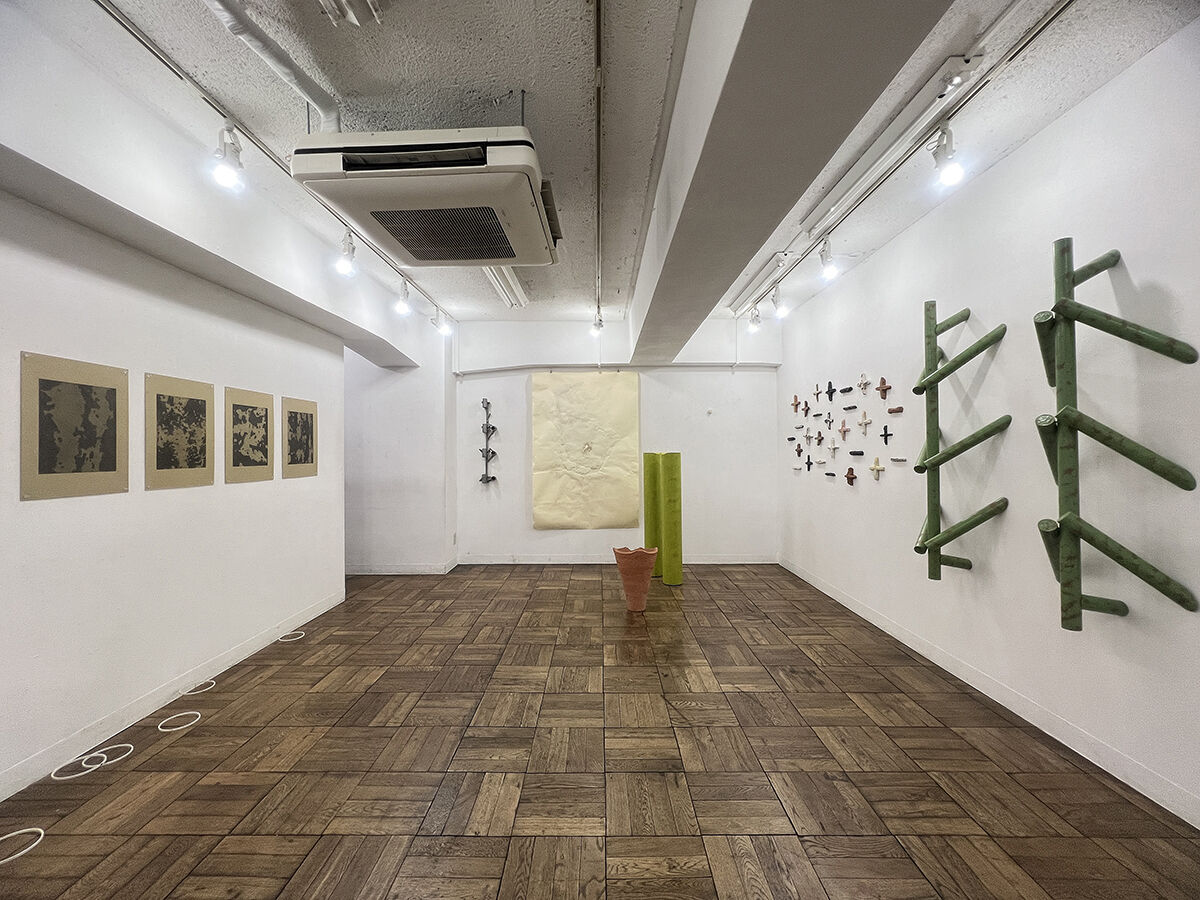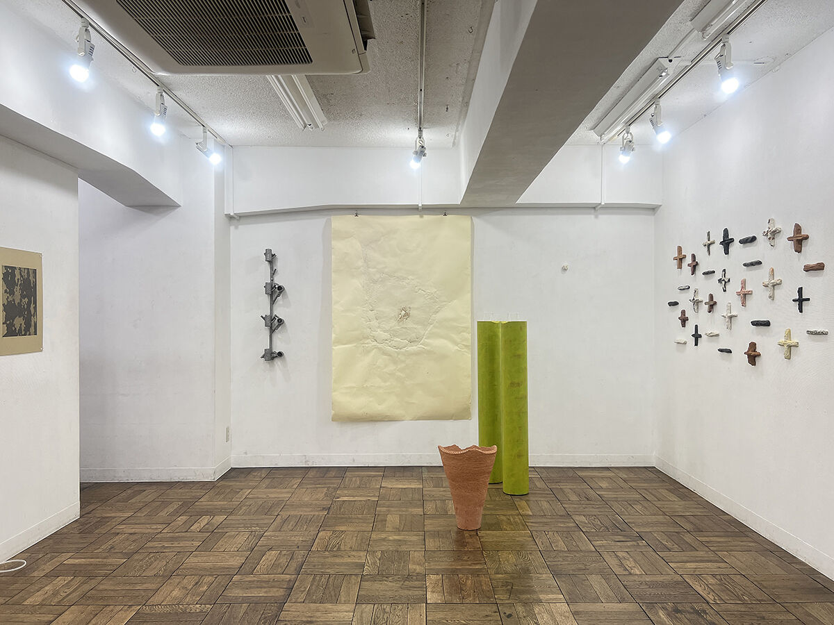 永沼 直孝 / 紙パイプに塗料, セラミック, 紙にフロッタージュ, アルミ鋳造, 綿棒, 他. / 立体, インスタレーション