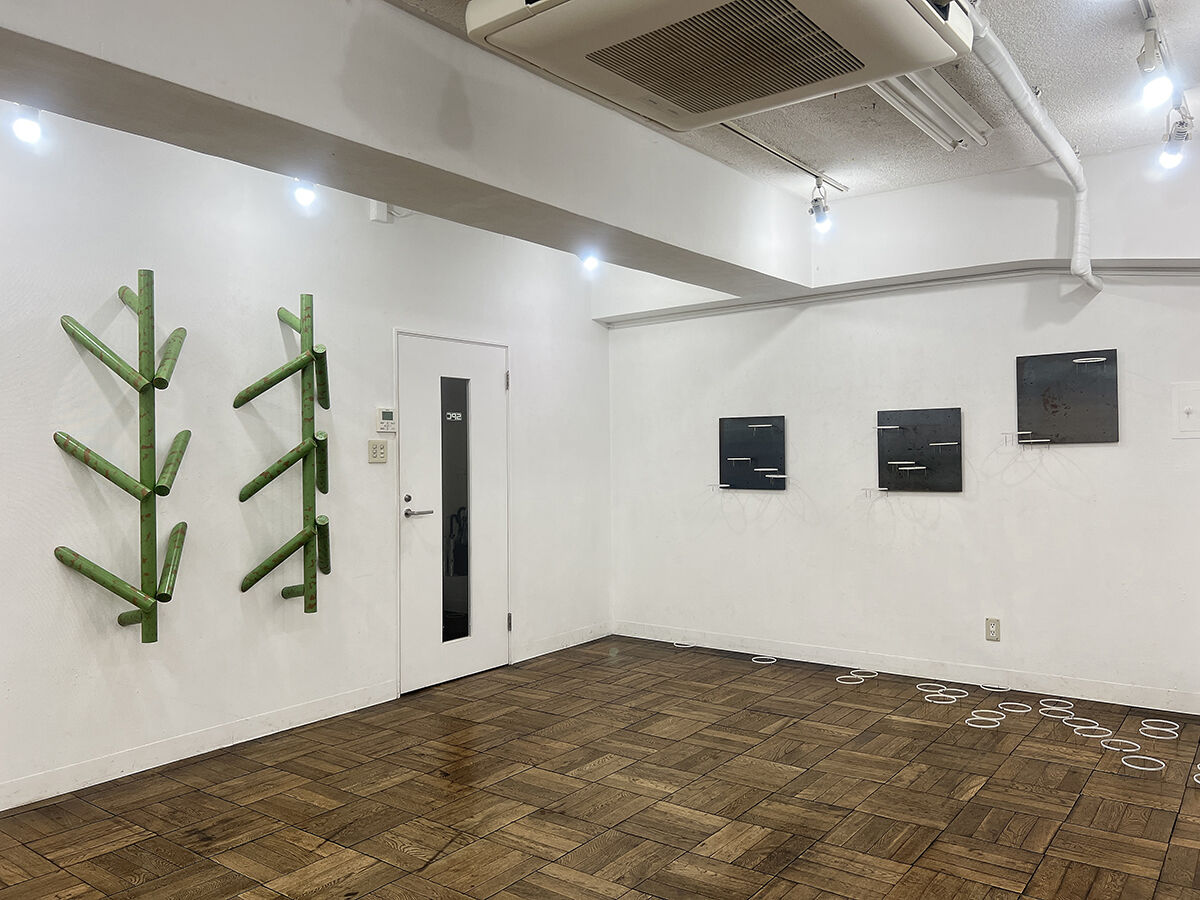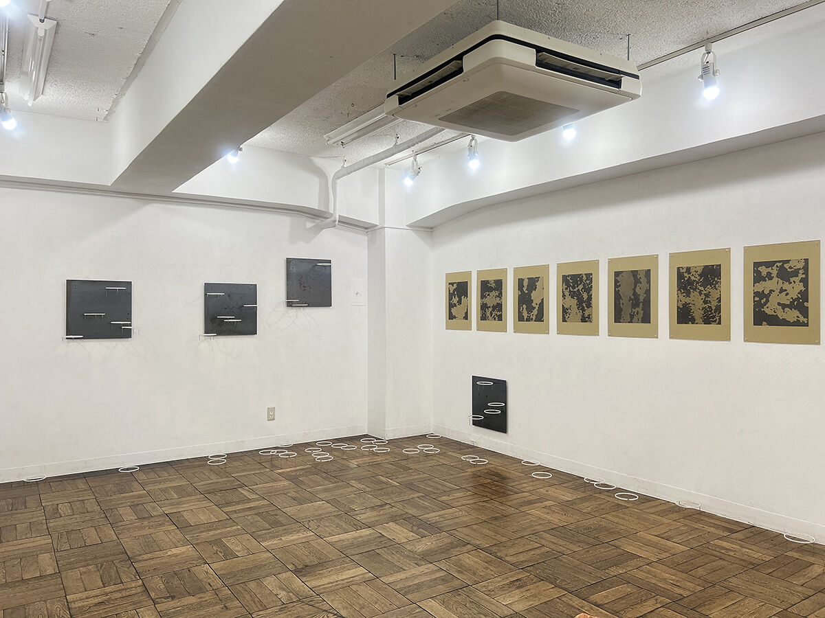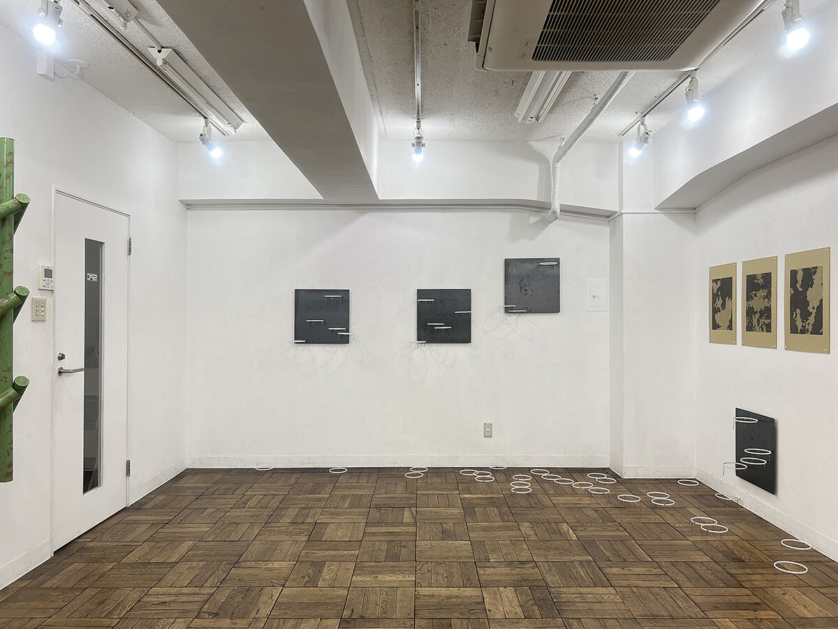 前田 精史 / 鉄板に磁石, 切断鉄パイプ, 厚紙に鉛筆. / インスタレーション, ドローイング